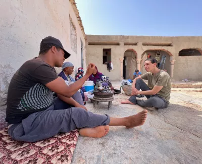 Un bidonville, un petit village au bord du désert, une ville ouvrière oubliée,